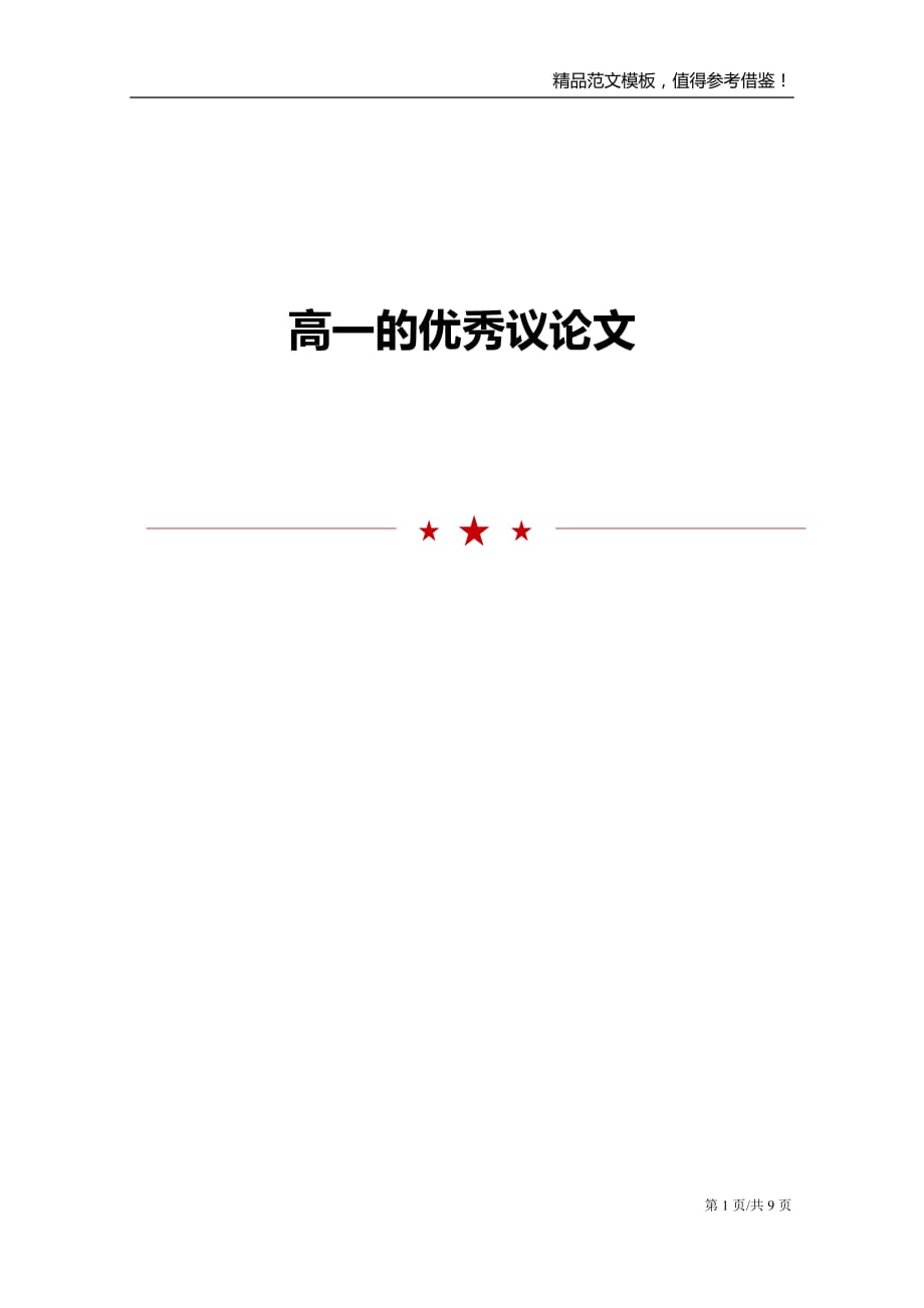 精品范文模板,值得参考借鉴!高一的优秀议论文高一的优秀议论文如果以考试来对应四季,春天是考试前老师的动员,夏天是动员后考场的铃声,秋天是铃声过后巨大的努力,冬天是努力过后无情的家长会为了大家学习方便,特地准备了高一的优秀议论文汇集5篇,希望可以帮助大家,欢迎借鉴学习! 高一的优秀议论文1 每次翻开《纳兰词》,总觉得那个能说会道、天资聪慧、博览群书的纳兰容若正站在我面前,给我讲述他一生的坎坷曲折,在三十一年的短暂人生成就不平凡的生命传奇 《纳兰词》改变我的心性正值青春年少的我,往往会因学习、朋友、家庭、社会环境等因素焦躁不已这时,我找出《纳兰词》细细品读,自会感觉丝丝清凉之意向我袭来,这不是自然界的风,却能迅速、透彻地吹灭我心中那些所有的不满火焰 “相逢不语,一朵芙蓉秋雨小晕红潮,斜溜鬟心只凤翘写的妃子是容若扮成小喇嘛进宫,看望青梅竹马的表妹,两人只能远远地对望一眼,这一眼却包含了深深地相思情看到这,我的心情渐渐平静,我与书也融为了一体 《纳兰词》改变我的认识赌书消得泼茶香,当时只道是寻常这是纳兰容若很的《浣溪沙》当时只道是寻常”,我的第一认识以为容若说的这件事非常寻常,不必深究,但当往后看注释深入观察后发现,容若想表达的是惋惜没有珍惜过去,所以都是错过后,方才知道要珍惜。