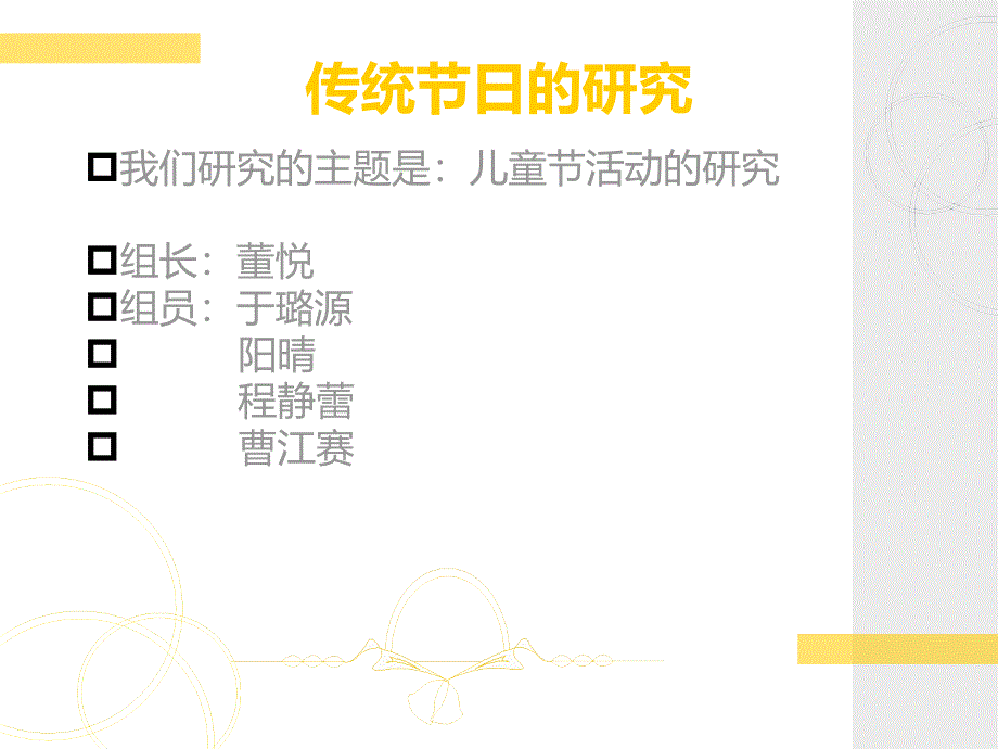 传统节日的研究p我们研究的主题是:儿童节活动的研究p组长:董悦p组员:于璐源p 阳晴p 程静蕾p 曹江赛 日本日本是世界上庆祝儿童节次数最多的国家,他们一年要庆祝三次儿童节,而且庆祝方式十分有意思,充满了浓浓的日本风情 3月3日女孩节 这个节日是专门为小女孩设立的,每到这一 各国“儿童节”(10张)天,家中有女儿的父母会在家里设置一个陈列台,台上放上穿着日本和服的漂亮女娃娃玩偶,作为给自己女儿的节日礼物 5月5日男孩节节日当天,有儿子的家庭,门前都悬挂“鲤鱼旗”,表示鲤鱼跳龙门的意思鲤鱼旗,用布匹或绸缎裁成“空心鲤鱼”,分黑、红和青蓝三种颜色黑,代表父亲;红,代表母亲;青蓝代表男孩自己家里有几个男孩儿,门口就悬挂几面青蓝旗青蓝旗子越多,表示这家的哥们儿就越多在日本人心目中,鲤鱼象征力量和勇气 11月15日“七五三”儿童节 在日本习俗里,三岁、五岁和七岁是小朋友特别幸运的三个年纪,所以每年的这一天,会专门为这三个年纪的孩子热闹地庆祝一番 这一天,小朋友会穿上最好的传统和服,还会背上一个画了松树、乌龟或鹤等图案的小纸袋,纸袋里装满了父母买的糖果和玩具。