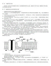 第二章 细胞的基本功能主要介绍一些具有共性的细胞基本功能,包括细胞膜的物质转运功能,细胞的信号转导功能,细胞膜的生物电现象,以及肌细胞的收缩功能。第一节 细胞膜的基本结构和物质转运功能一、细胞膜的结构和化学组成生物膜研究发展史: 1895 年 Overton 在研究卵细胞的通透性时, 发现脂溶性物质比其它物质容易透过细胞膜。因此, 他认为细胞膜必定存在一层类脂。 1925 年 Gorter and Grendel 提取出 RBC 膜的类脂分子, 并将其铺于水、气界面, 发现其面积是原红细胞膜面积的两倍, 从而提出膜的脂质双分子层。1952 年电子显微镜问世, 1959 年 Robertson 提出了“单位膜” (unit menbrane)概念:一切膜性结构基本上都是三层, 其总厚度约 7.5nm。1972 年 Singer and Nicholson 提出“液态镶嵌模型” (fluid mosaic model):认为生物膜是一种可塑的,流动的,嵌有蛋白质的类脂双分子层的结构。类脂的通透性低, 是很好的区域化隔膜。嵌在类脂层上的许多具有特定功能的蛋白质有转运、受体、酶等功能。这层膜在光学显微镜下是观察不到的。在电子显微镜下,可以观察到膜有三层结构,内外两层各是一层致密带,厚约 2.5nm,中间是一层透明带,厚约 3.5nm。此种膜结构不仅见于各种细胞的细胞膜,还见于各种细胞器的膜性结构,如内质网膜、线粒体膜、溶酶体酶、核膜等。由于其是一种细胞最基本的膜结构形式,故称为单位膜。细胞膜主要由脂质(lipid)和蛋白质(protein)组成,此外还有极少量的糖类。以重量计,蛋白质与脂质的比例在 4:1~1:4 之间,在不同类型的细胞相差很大,取决于膜的功能活动水平。功能活跃的膜,蛋白质比例较高。但蛋白质分子量比脂质大得多,因此,脂质分子的数量至少超过蛋白质分子数的 100 倍以上。分子生物学迄今所获得的研究成果表明,各种物质,特别是生物大分子在生物结构中的特殊有序排列,是决定其生物学特性、实现各种生命现象的基础。由于我们还没有一种能直接观察组成膜的分子排列结构形式的技术,因此从 20 世纪 30 年代以来、生物学家们提出了很多有关膜的分子排列结构的假说, 其中 Singer 等在 1972 年提出的膜的液态镶嵌模型(fluid mosaic model)得到很多实验结果的支持。这一假说的基本内容是:细胞膜以液态的脂质双分子层为基架、其中镶嵌有不同功能的蛋白质。细胞膜结构示意图:(一)脂质双分子层只要得到纯净的膜结构,用化学层析法就可以得到膜的各种脂质成分。膜的脂质主要由磷脂(70%)和胆固醇(30%)组成磷脂酰胆碱的基本结构是:一分子甘油的三个羟基中,两个羟基和两分子的长链脂肪酸结合,另一个羟基和一分子磷酸结合,后者再结合一个胆碱。根据这个碱基的种类,动物细胞膜中的磷脂主要有四种:1. 磷脂酰胆碱 2. 磷脂酰乙醇胺 3. 磷脂酰丝氨酸 4. 磷脂酰肌醇各种膜脂质分子都是双嗜性分子,每个磷脂分子中由磷酸和碱基构成的基团为亲水区,都朝向膜的内表面或外表面,而两条较长的脂肪酸烃链为疏水区,则在膜的内部两两相对。脂质分子的这种定向而整齐的排列,符合脂质分子本身的理化特性和热力学原理。因为膜脂质的磷酸和碱基都是亲水性极性基团,另一端是疏水性的非极性脂肪酸烃链,在膜内外都是水溶液的情况下,自然出现疏水基团两两相对,而亲水基团则分别朝向细胞外或细胞内。这是一种能量最低、最稳定的结构形式。膜脂质的熔点较低,在体温条件下呈液态,因而膜具有流动性,脂质分子可在膜平面内随机地侧向运动,但很难在垂直方向上作跨层运动,这种特性使细胞能进行变形运动和自我修复。膜的流动性受许多因素影响。例如乙醇、乙醚、麻醉剂能使膜流动性增高,而胆固醇含量的增高使流动性降低。膜流动性降低会对膜的功能带来影响,例如免疫细胞依赖于膜蛋白在膜上的运动才能与抗原结合,膜的流动性降低显然会降低这种功能。(二) 细胞膜蛋白细胞膜蛋白是以 α 螺旋或球形结构分散镶嵌在膜的脂质双分子层中的。细胞膜蛋白主要以两种方式存在于膜脂质中:整合蛋白质、表面蛋白质 1.整合蛋白 整合蛋白的肽链可分为若干疏水区和亲水区,每个疏水区包括 20~ 30 个疏水性强的氨基酸残基,它们以 α 螺旋结构穿过脂质双层,通常可根据肽链中疏水区出现的数目,推断肽链穿膜的次数。整合蛋白的肽链最少 1 次,多则几十次穿膜,连接各疏水区的亲水性肽段则成为胞内环或胞外环,分别突出于膜内或膜外。与物质跨膜转运有关的功能蛋白,如载体蛋白、通道蛋白、离子泵等都属于整合蛋白 。2.表面蛋白质 有些蛋白以其肽链中带电的氨基酸或基团,与膜两侧的表面的脂质极性基团相互吸引,使蛋白质分子像是附着在膜的表面。它们与膜的结合较松散,利用盐析等方法就可将它们与膜分离。膜结构中的蛋白质,具有不同的分子构象,细胞和周围环境之间的物质、能量和信息的交换,大多与细胞膜上的蛋白质分子有关。(三)细胞膜糖类细胞膜含有糖类 2%~10%,主要是一些寡糖和多糖链。它们以共价键的形式和膜脂质和蛋白质形成糖脂和糖蛋白,仅存于细胞膜的外侧,这些糖脂和糖蛋白由于糖链中单糖的排列顺序不同,从而成为细胞的标志;或作为抗原决定簇;或作为受体的可识别部分。事实上,真核细胞的膜外侧表面几乎没有裸露的部分,全部结合有糖链。二、细胞膜的物质转运功能既然膜是由连续的脂质双层分子形成,它就