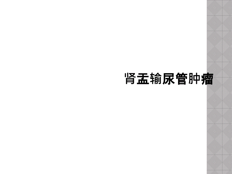 肾盂盂输尿管尿管肿瘤瘤肾盂输尿管肿瘤在泌尿系肿瘤中发生率并不高,但在50岁以上血尿患者中呈现逐步增高 男性患者与女性患者比例约3:1 长期吸烟患者需要引起特别的重视临床表现 1)血尿 肉眼血尿及镜下血尿是最常见的临床症状,大约75%的患者因血尿原因就诊2) 腰部疼痛或肾绞痛 随着肿瘤增大引起梗阻集合系统扩张导致腰部胀痛;血块堵塞输尿管引起肾绞痛约18%的患者因腰部胀痛肾绞痛来院就诊3) 排尿异常 部分患者表现为尿路刺激症状4)少数患者因消瘦、贫血、骨痛、腹部肿块等晚期肿瘤症状就诊肿瘤的病理类型对肿瘤患者治疗选择及预后判断有指导意义,肾盂输尿管肿瘤有哪些病理类型1) 尿路上皮癌 尿路上皮癌是肾盂输尿管肿瘤中最常见的,约占90%以上它与吸烟关系密切2) 鳞癌 鳞癌约占1-7%它与结石的长期刺激有关3) 腺癌 腺癌<1%它的发生与结石的长期刺激,长时间的梗阻有一定关系4) 内翻性乳头状瘤 目前认为为良性肿瘤伴低度恶性潜能 临床病理分期方法一、临床分期法 根据肿瘤是否有转移,邻近器官受累情况和患者全身情况,可将癌(或肉瘤)分为早、中、晚三期。