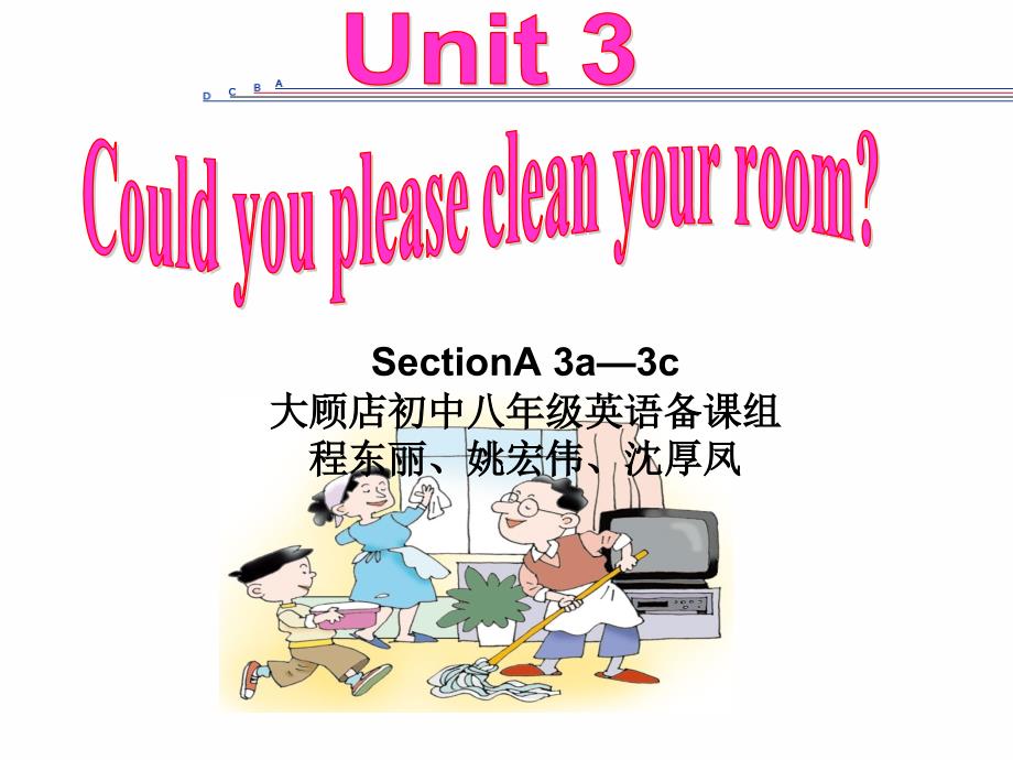SectionA 3a—3c大顾店初中八年级英语备课组大顾店初中八年级英语备课组程东丽、姚宏伟、沈厚凤程东丽、姚宏伟、沈厚凤take out the trashdo chores do the dishes sweep the floor make dinner make the bed fold the clothes A: Could you please make sentences with these phrases in the past tense?B: Sure. I did some chores.clean the living room help out with at least finish doing sth. be back from shoppingsee this messmother clean3a. Read the story and answer the questions.1. Why was Nancy’s mom angry with her?2. Did they solve the problem? How?3.When did this happen ??4.What was the first thing Nancy did when she got home?5.What did Nancy finally understand ?Task1 Read and answer1 For a week , she did not do any housework and neither did I .2The minute I sat down in front of the TV, my mom come over.3 I ‘m just as tired as you are.Task2Task3 3c. Decide whether the underlined words in the sentences are verbs or nouns. Then write another sentence using the underlined word in the other form.1. Could you take the dog for a walk? (noun)2. Could I watch one show first?I walked home from school. (verb)Let’s show a picture to you. (verb)3. I can’t work all day. 4. You watch TV all the time.5. “What happened?” she asked in surprise.It’s difficult to find work in this city. (noun) How much is that watch? (noun)It won’t surprise me if he loses the exam. (verb)1. You watch TV all the time and ... all the time(在该段时间内)一直;(在该段时间内)一直;向来,向来, 一向;时时刻刻;每时每刻一向;时时刻刻;每时每刻 e.g. I do this all the time. 我一直是这么做的。