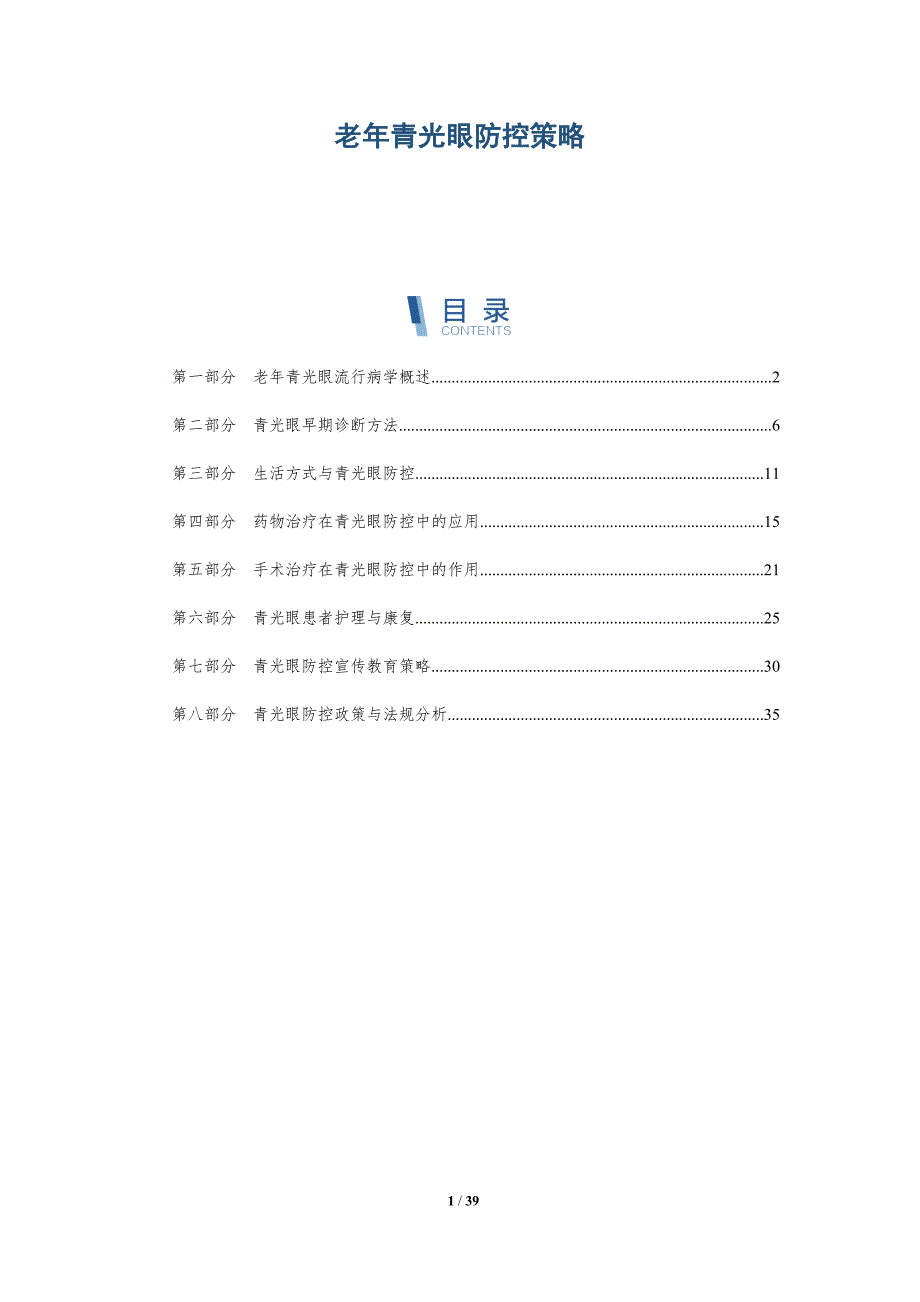 老年青光眼防控策略 第一部分 老年青光眼流行病学概述 2第二部分 青光眼早期诊断方法 6第三部分 生活方式与青光眼防控 11第四部分 药物治疗在青光眼防控中的应用 15第五部分 手术治疗在青光眼防控中的作用 21第六部分 青光眼患者护理与康复 25第七部分 青光眼防控宣传教育策略 30第八部分 青光眼防控政策与法规分析 35第一部分 老年青光眼流行病学概述关键词关键要点老年青光眼患病率与发病率趋势1. 随着全球人口老龄化加剧,老年青光眼的患病率和发病率呈现上升趋势2. 根据最新研究报告,老年青光眼的患病率在65岁以上人群中达到3%-5%,且随年龄增长而增加3. 发病率趋势分析显示,青光眼发病年龄向年轻化发展,提示预防工作需加强老年青光眼地域分布特点1. 老年青光眼的患病率在不同国家和地区存在差异,可能与遗传、环境、生活习惯等因素相关2. 欧美地区老年青光眼的患病率高于亚洲和非洲地区,可能与生活方式和医疗资源有关3. 中国作为人口大国,老年青光眼患者数量庞大,地域分布不均,东部沿海地区患病率较高老年青光眼性别差异1. 老年青光眼在性别上的患病率存在差异,女性患病率略高于男性。