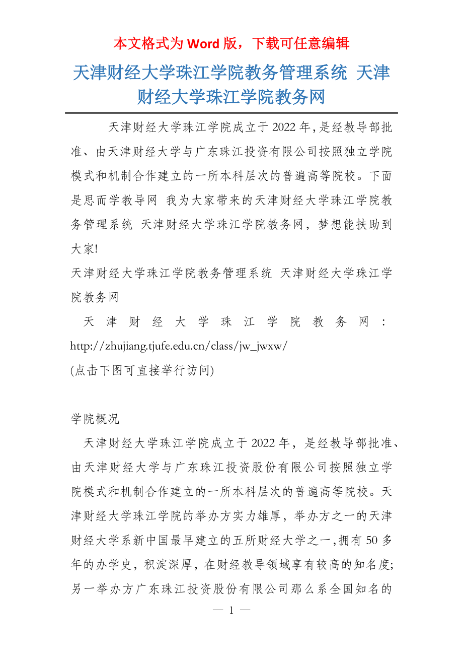 本文格式为Word版,下载可任意编辑天津财经大学珠江学院教务管理系统 天津财经大学珠江学院教务网 天津财经大学珠江学院成立于2022年,是经教导部批准、由天津财经大学与广东珠江投资有限公司按照独立学院模式和机制合作建立的一所本科层次的普遍高等院校下面是思而学教导网 我为大家带来的天津财经大学珠江学院教务管理系统 天津财经大学珠江学院教务网,梦想能扶助到大家! 天津财经大学珠江学院教务管理系统 天津财经大学珠江学院教务网 天津财经大学珠江学院教务网: (点击下图可直接举行访问) 学院概况 天津财经大学珠江学院成立于2022年,是经教导部批准、由天津财经大学与广东珠江投资股份有限公司按照独立学院模式和机制合作建立的一所本科层次的普遍高等院校天津财经大学珠江学院的举办方实力雄厚,举办方之一的天津财经大学系新中国最早建立的五所财经大学之一,拥有50多年的办学史,积淀深厚,在财经教导领域享有较高的知名度;另一举办方广东珠江投资股份有限公司那么系全国知名的大型房地产开发集团公司 天津财经大学珠江学院坐落于风景优雅,环境新颖的天津市宝坻区京津新城,紧邻津蓟高速马路,交通便利。