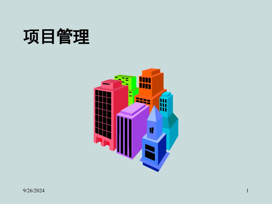 9/26/202423三、项目管理的产生与发展1. 项目管理的产生古代: 中国的长城; 埃及的金字塔;20世纪: 40—50年代:国防和军工项目60—80年代:建筑,国防,航天90—成为企业管理的重要手段9/26/202424欧美发达国家欧美发达国家:项目管理不仅应用在建筑,航天,国防等传统领域,而且已经在电子,通信,计算机,软件开发,制造业,金融业,保险业,政府机关,国际组织中成为其运作的中心模式.如: AT&T, BELL, IBM, 美国白宫行政办公室, 美国能源部, 世界银行等在其核心的部门都采用项目管理.中国中国: 1980年后,项目管理模式在我国部分重点建设项目中运用,如云南鲁布革水电站, 三峡水利枢纽建设等9/26/2024252. 项目管理科学的发展(1) 潜意识的项目管理从远古—20世纪30年代以前, 人们是无意识地按照项目的形式运作如: 埃及的金字塔, 中国的都江堰和万里长城特征特征: 没有形成行之有效的科学管理方法, 凭经验,智慧,直觉9/26/202426(2) 传统项目管理的形成20世纪30年代—50年代初期, 主要应用于军事工程与建设项目特征特征: 用横道图进行项目的规划与控制规模较大的工程项目和军事项目采用里程碑系统9/26/202427(3) 项目管理的传播和现代化从20世纪50年代初—70年代末, 主要应用于国防,航天, 建设项目特征特征:开发和推广应用网络计划技术,利用系统管理的思想;项目管理有了科学的系统方法, 但主要强调项目的执行问题: 只注意三个约束; 只注重常规的处理工期、预算及资源分配的固定工具; 对项目应考虑的问题的范围定义太窄: 项目的生命周期仅限于四个阶段:概念、计划、执行、收尾; 对项目经理的工作职责限制太死。