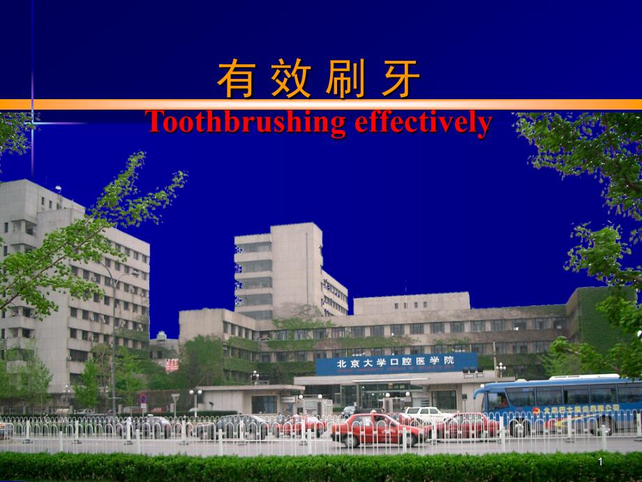 1,有 效 刷 牙 Toothbrushing effectively,2,牙刷的起源与发展 Origin and Development of Toothbrush,口香藤(chew-stick) 使口腔气息清新 清洁牙齿和牙龈 第一把牙刷:猪鬃和兽骨制成唐代(公元618—907年),3,牙刷的起源与发展,第一把有效牙刷:1780,William Addis(英) 柄由兽骨制成,一端有孔可以插入猪鬃,然后用细线将猪鬃固定在孔内 改进: 刷柄——有机玻璃和塑料代替兽骨(20世纪初) 刷毛——尼龙毛便宜耐久,代替猪鬃(二战中),4,牙刷的起源与发展,尼龙毛有许多猪鬃不具备的优点: (1)外形一致, (2)易于加工, (3)回弹性好, (4)不易折断, (5)不易存水, (6)不易寄居微生物等 五十年代开始大规模生产软质尼龙毛牙刷,5,牙刷的起源与发展,牙刷规格的历史演变—— 七十年代-八十年代,成人牙刷的标准: 相对小的刷头(30x10mm),以便能深入一些隐蔽部位 宽而长的柄以利持握 刷毛为软质尼龙毛,直径0.2mm,长10mm,末端圆滑以减少对牙龈的损害 多丛刷毛、平面外形,以利更好地清洁牙面。