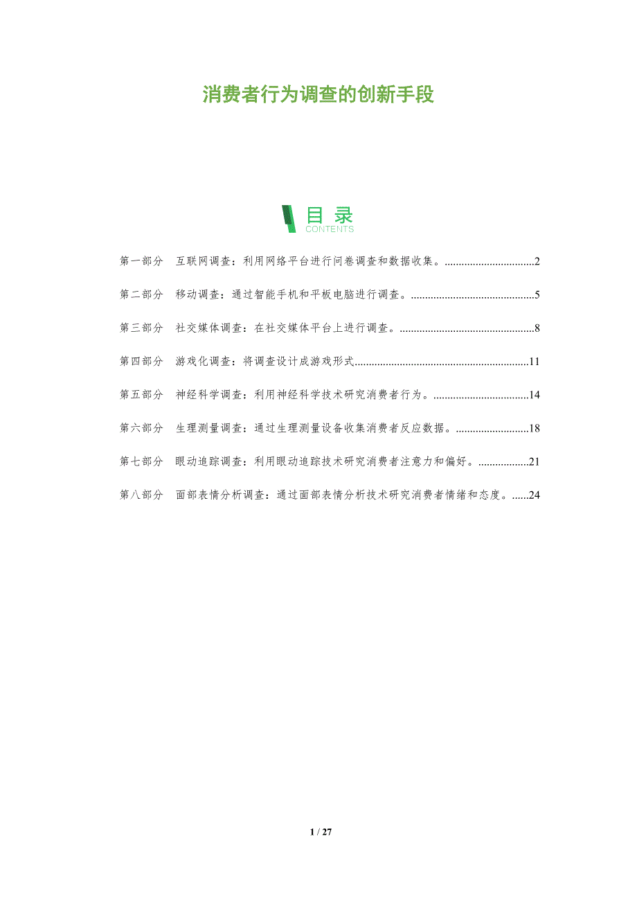 消费者行为调查的创新手段 第一部分 互联网调查:利用网络平台进行问卷调查和数据收集 2第二部分 移动调查:通过智能和平板电脑进行调查 5第三部分 社交媒体调查:在社交媒体平台上进行调查 8第四部分 游戏化调查:将调查设计成游戏形式 11第五部分 神经科学调查:利用神经科学技术研究消费者行为 14第六部分 生理测量调查:通过生理测量设备收集消费者反应数据 18第七部分 眼动追踪调查:利用眼动追踪技术研究消费者注意力和偏好 21第八部分 面部表情分析调查:通过面部表情分析技术研究消费者情绪和态度 24第一部分 互联网调查:利用网络平台进行问卷调查和数据收集关键词关键要点互联网调查:网络平台上的问卷调查和数据收集1. 便利性和可及性:互联网调查可以通过各种设备轻松访问,受访者可以在任何时间、任何地点完成调查,极大地提高了调查的便利性和可及性2. 扩大受众范围和多样性:互联网调查允许研究人员接触到广泛的受众群体,包括那些难以通过传统方法(如或面对面调查)联系到的人这可以帮助研究人员收集更具代表性的数据,从而提高研究结果的可靠性3. 成本效益:与传统调查方法相比,互联网调查的成本通常较低。