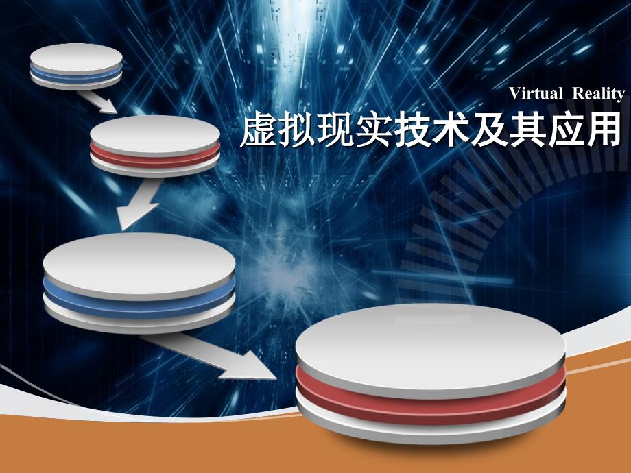 Virtual Reality 虚拟现实技术及其应用,北京邮电大学,,虚拟现实系统典型硬件装置,虚拟现实的图形学基础,真实感图形的实时绘制技术,碰撞检测与三维真实感声音,主要内容,虚拟现实技术概述,目录,2,示例教学,北京邮电大学,产 生 背 景,虚拟现实概述,北京邮电大学,计算机科学发展的一个重要推动力 —如何让计算机更容易被人使用,操作人员可以以更为自然的方式使用计算机 将结果以更易被操作人员接受的方式尽快地表现出来 计算机能够更准确地理解人的意图,北京邮电大学,从60年代末起 在计算机技术的支持下已对各种计算提出“可视”的要求,在计算数据的基础上要解释数据、理解数据,把计算得到的数字信息转换为直观的、用视频或声频信息表示的、随时间和空间变化的物理现象或模拟的物理现象 先进的科学计算将能洞察到传统科学计算所不可能看见的结果(To see the unseen),可视化是把某些不可见对象或抽象事物转化为可见的、可感知的结果 “ The purpose of computing is insight, not number ” ---Richard Hamming,北京邮电大学,人机和谐、定性定量结合是创造性研究的源泉,要求在观察计算所得的数据的基础上,能感受计算所得的形象结果和全局观念 研究人员甚至还希望能沉浸在计算所得、计算所创建的三维空间中,能交互地控制、驾驭和修改所“看见和感受到”的计算结果,自90年代初起 在高性能计算的支持下要求实现沉浸式的可视计算,北京邮电大学,解决复杂问题,必须跨领域合作集体攻关 网络技术已基本成熟,基于网络计算可实现资源共享 基于统一的开放体系框架结构、应用程序接口和面向对象的中间件,已能实现“优势互补”、“即插即用”的协同式的可视化计算,自90年代中旬以来在网络计算技术的支持下要求实现协同式的可视化计算,北京邮电大学,总之:沉浸式、协同式的可视化计算促进高性能计算机的发展, 高性能计算机为沉浸式、协同式的可视化计算提供基础,关键技术 高性能计算机和高性能网络技术 大量的、快速的、分布的、基于网络的数值计算 开放体系结构、中间件、人机接口和经验模型的建立 把数据映射成可视化的、具有某种物理属性的对象(虚物实化) 把实物转化为可融入虚拟环境的虚拟对象(实物虚化) 美国各个国家计算中心和有关部门都提出迎接21世纪技术发展的相应规划,如:DOE 2000和NSF的PACI等,北京邮电大学,,,传统计算机 的处理空间 串行的 单维的 封闭的 预定程序,人思考问题 的认知空间 并行的 多维的 开放的 归纳演绎,前30年计算机技术的发展 减小人的认知空间和计算机的处理空间的差异,努力建立和 谐人机环境 M大规模并行 M多媒体 O开放系统 O面向对象 N网络计算 逐步减小人和 机器间的隔阂,北京邮电大学,和谐的人机环境,MMOON,A,K,,v,后20年计算机技术的发展 从MMOON到AKV 有望实现和谐的人机环境,在继续发展MMOON的基础上,突破以下关键技术,逐步构建和谐的人机环境 Archive Storage and Processing -- 海量信息存储与处理 Knowledge Processing -- 知识处理 Visualized Computing & Virtual Reality -- 可视化计算与虚拟现实,北京邮电大学,虚拟现实的发展里程碑,1965年,Sutherland在篇名为《终极的显示》的论文中首次提出了包括具有交互图形显示、力反馈设备以及声音提示的虚拟现实系统的基本思想,从此,人们正式开始了对虚拟现实系统的研究探索历程。