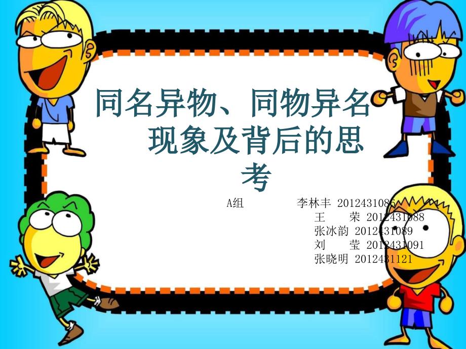 同名异物、同物异名同名异物、同物异名现象及背后的思现象及背后的思考考A组 李林丰 2012431086 王 荣 2012431088 张冰韵 2012431089 刘 莹 2012431091 张晓明 2012431121同名异物和同物异名的定义及原因同名异物和同物异名的定义及原因定义:定义: 同名异物,即一个名称被同时用来代表几种不同植物来源的药物 同物异名,即同一中药材具有多种不同的名称原因:原因:?? 中草药品种繁多,产区广泛,历代本草记载、地区用语、使用习惯不尽相同,类同品、代用品繁多同名异物实例同名异物实例大黄!掌叶大黄掌叶大黄唐古特大黄唐古特大黄药用大黄药用大黄白头翁!正品毛茛科白头翁正品毛茛科白头翁Pulsatillae chinensis (Bge.) Regel毛茛科植物野棉花毛茛科植物野棉花( (陕西、甘肃陕西、甘肃) )Anemone vitifolia BuchAnemone vitifolia Buch菊科植物火绒草菊科植物火绒草Leontopdium leontopodioides(VPi 11 d.)Beauv.Leontopdium leontopodioides(VPi 11 d.)Beauv.( (全草全草) )玄参科植物绵毛鹿茸草玄参科植物绵毛鹿茸草Monochasma savatier Franch.(Monochasma savatier Franch.(江西江西) )(全草)(全草)蔷薇科植物委陵菜蔷薇科植物委陵菜Potentilla chinensis Ser.Potentilla chinensis Ser.( (湖北、湖南、江西等湖北、湖南、江西等) ) (全草)(全草)翻白草翻白草Potentilla discolorge.Potentilla discolorge.( (浙江、江苏、安徽等浙江、江苏、安徽等) ) (全草)(全草)同物异名实例同物异名实例人参!u人参有鬼盖、人衔、神草、人微、土精、地精等古名;u根据产地不同又称为辽参、吉林参、高丽参、朝鲜参;u根据加工方法不同有生晒参、糖参、红参、白参等名称;u根据野生和栽培的不同分别称为野参和园参等u在东北称坤草u在江苏称天芝麻或田芝麻u浙江叫三角胡麻u青海叫千层塔u四川叫血母草u甘肃叫全风赶u广东叫红花艾u云南叫透骨草益母草!重楼!又称七叶一枝花、枝花头、草河车、蚤休等 同名异物、同物异名的影响同名异物、同物异名的影响影响:影响:l生产、收购,及临床应用等方面混乱l轻者贻误病情l重者危及患者生命改善方法:改善方法:使中药药名规范化,确保一药一名。