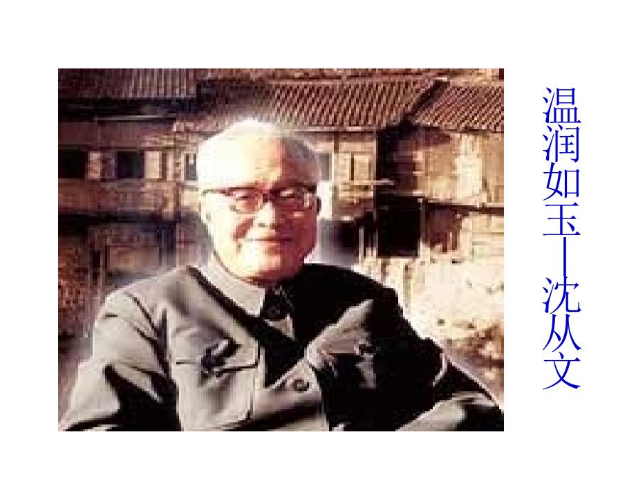 温润如玉︱沈从文和田美玉和田美玉缅缅玉玉一、一座城—展翅欲飞的凤凰民国总理:熊希龄民国总理:熊希龄画坛鬼才:黄永玉画坛鬼才:黄永玉二、一个人—现代文学大师沈从文三、一本书三、一本书—《《边城边城》》,一个永远回不去的梦,一个永远回不去的梦“一颗千古不磨灭的珠玉一颗千古不磨灭的珠玉”“优美、健康、自然、而又不悖乎人性的人生优美、健康、自然、而又不悖乎人性的人生”(一)自然美(一)自然美 环境美环境美 风俗美风俗美(二)人情美(二)人情美 大社会大社会 小人物小人物 小溪宽约二十丈,河床是大片石头作成,小溪宽约二十丈,河床是大片石头作成,静静的河水即或是深到一篙不能落底,却依然静静的河水即或是深到一篙不能落底,却依然清澈透明,河中游鱼来去都可以计数清澈透明,河中游鱼来去都可以计数 初五大清早落了点毛毛雨,河上游且涨初五大清早落了点毛毛雨,河上游且涨了点了点“龙船水龙船水”,河水全变成豆绿色河水全变成豆绿色两岸多高山,山中多可以造纸的细竹,常年作两岸多高山,山中多可以造纸的细竹,常年作深翠颜色,逼人眼目。