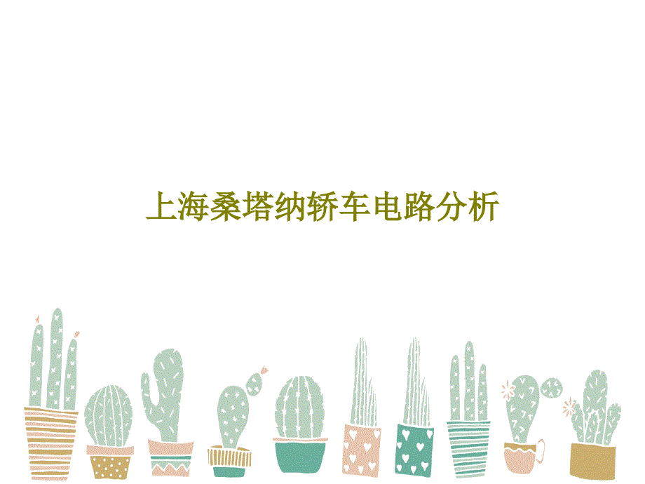 上海桑塔纳轿车电路分析上海桑塔纳轿车电路分析46、法律有权打破平静——马·格林47、在一千磅法律里,没有一盎司仁爱——英国48、法律一多,公正就少——托·富勒49、犯罪总是以惩罚相补偿;只有处罚才能使犯罪得到偿还——达雷尔50、弱者比强者更能得到法律的保护——威·厄尔一、汽车电路图读识基本方法1.汽车电路图种类汽车电路图主要用于表达汽车各电气系统的工作原理及电器间的连接关系汽车电路图汽车电路图汽车电路原理图汽车电路原理图汽车电路定位图汽车电路定位图汽车电气线路图(或接线图)汽车电气线路图(或接线图)汽车电器定位图汽车电器定位图汽车线束图汽车线束图汽车线路连接器插脚图汽车线路连接器插脚图汽车接线盒(含熔丝盒、继电器盒)平面布置图汽车接线盒(含熔丝盒、继电器盒)平面布置图汽车电子控制电路原理图汽车电子控制电路原理图汽车传统(开关汽车传统(开关/继电器)控制电路原理图继电器)控制电路原理图汽车电路原理方框图汽车电路原理方框图汽车开关内部位置汽车开关内部位置—电气连接关系图电气连接关系图8/21/202462.读识汽车电路图的一般要领(1)认真读几遍图注图注(2)牢记电气图形符号电气图形符号(3)熟记电路标记符号标记符号(4)牢记汽车电路特点(5)牢记回路原则(6)浏览全图,分割各个单元系统分割各个单元系统(7)熟记各局部电路之间的内在联系和相互关系(8)掌握各种开关在电路中的作用(9)全面分析开关、继电器的初始状态和工作状态(10)掌握电器装置在电路图中的位置电器装置在电路图中的位置(11)先易后难(12)注意搜集资料和经验积累 8/21/202473.上海桑塔纳轿车电路识图方法上海桑塔纳轿车系列车型的电路结构基本上大同小异,有的仅是配置不同,以桑塔纳的基本电路为例。