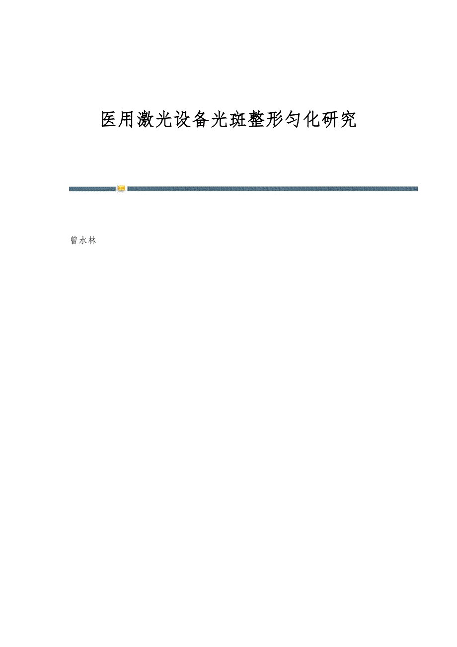 医用激光设备光斑整形匀化研究 曾水林摘 要:本文基于医用半导体激光设备与多模光纤耦合系统,分析了造成了多模光纤出射光斑的不均匀原因通过软件仿真和实际实验,研究解决了多模光纤出射光斑的不均匀性问题这主要包括在多模光纤上添加使光纤传播路径发生改变的结构件及对光纤末端进行处理与未添加匀化结构件和未进行端面处理的多模光纤光斑进行对比,充分证明加入结构件和对光纤端面的处理并不会造成多模光纤激光功率传输的太大改变关键词:半导体激光;多模光纤;光斑匀化0 前言和其他激光器相比,单芯片半导体激光器最大的缺点就是光束质量差由于单芯片半导体激光器固有结构的特点,大功率单芯片半导体激光器的光束参量积在快慢轴方向相差较大,输出光能量不集中,远场光强分布不均匀,很难用普通的光学系统得到高亮度的大功率激光输出,严重妨碍了大功率单芯片半导体激光器的应用市面上普通的单个半导体激光二极管,其输出的激光功率一般在几百毫瓦到几瓦之间,对于一般的应用领域如,光指示、光催化或光激发已经足够,然而,在实际应用中,未经匀化的半导体激光照射装置其输出的光斑中心或边缘有暗区,光斑不均匀,容易造成被照射组织的光敏激发不均匀,影响疗效。
