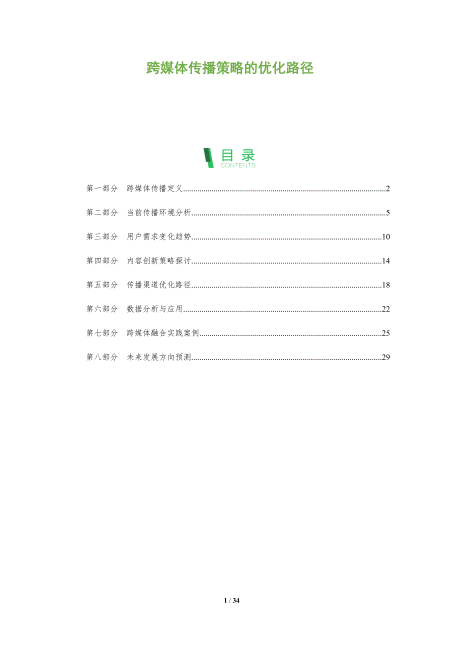 跨媒体传播策略的优化路径 第一部分 跨媒体传播定义 2第二部分 当前传播环境分析 5第三部分 用户需求变化趋势 10第四部分 内容创新策略探讨 14第五部分 传播渠道优化路径 18第六部分 数据分析与应用 22第七部分 跨媒体融合实践案例 25第八部分 未来发展方向预测 29第一部分 跨媒体传播定义关键词关键要点【跨媒体传播定义】:跨媒体传播是指跨越不同媒体平台和渠道,通过整合和协调的方式,对同一内容或品牌进行多维度、多层次的传播策略,以实现更广泛和深入的受众覆盖与影响1. 多媒体平台整合:整合包括但不限于电视、广播、互联网、社交媒体、移动应用等多媒体平台,确保内容在跨平台间的无缝传递2. 内容一致性与个性化:保持内容在不同平台上的信息一致性和品牌形象的一致性,同时根据用户偏好和媒体特性进行适当调整,实现个性化的传播效果3. 数据驱动的决策:利用大数据分析,收集并分析受众行为数据,优化传播策略,提升传播效率和效果,实现精准营销跨媒体传播策略的多维度整合1. 跨媒体传播的多渠道协同:通过不同媒体渠道的协同工作,形成统一的传播效果,增强品牌影响力2. 内容的多形式转换:将同一内容以不同的形式呈现,如文字、图像、音频、视频等,适应不同媒体平台的特性。