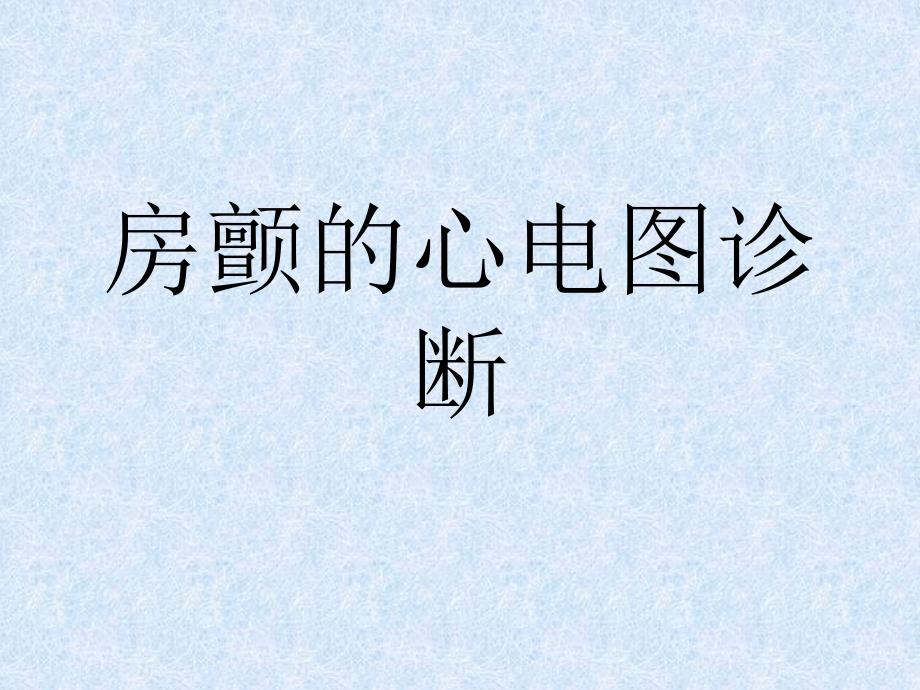 房颤的心电图诊断 心房颤动心电图特征 Ø ①P波消失,代之以大小不等、形态不同的f波,以V1、Ⅱ、Ⅲ、aVF导联为明显f波的振幅多在0.1~0.5毫伏之间,远较F波为小,通常把大于0.1毫伏者称粗颤,把小于0.1毫伏者称细颤 Ø ②心房频率在350~600次/分之间,f波越纤细频率越快,f波粗大则频率较慢故可以低于350次/分或高于600次/分f波之间无等电位线 Ø ③R-R间期绝对不齐,在f波不明显或由于心室率过快f波观察不清时,可结合P波消失而作出诊断 心房颤动心电图分型•一、按f波形态分为:Ø 粗颤: f波大于0.1毫伏,常见于风心病、甲亢患者复律效果较好Ø 细颤: f波小于0.1毫伏,常见于冠心病、高心病复律困难•二、按心室率的快慢分为Ø 慢速型:心室率≤100次/分,一般在60~100 次/分之间Ø 快速型:心室率在100~180次/分之间Ø 极速型:心室率在180次/分以上 •三、根据心室节律的变化特点分为:Ø 规则倾向型:相邻R-R周期基本相等或略有差别,一般不超过30ms,多见与快速型房颤Ø 成倍型:长R-R周期大致为短R-R周期的倍数,见于不纯性房颤。