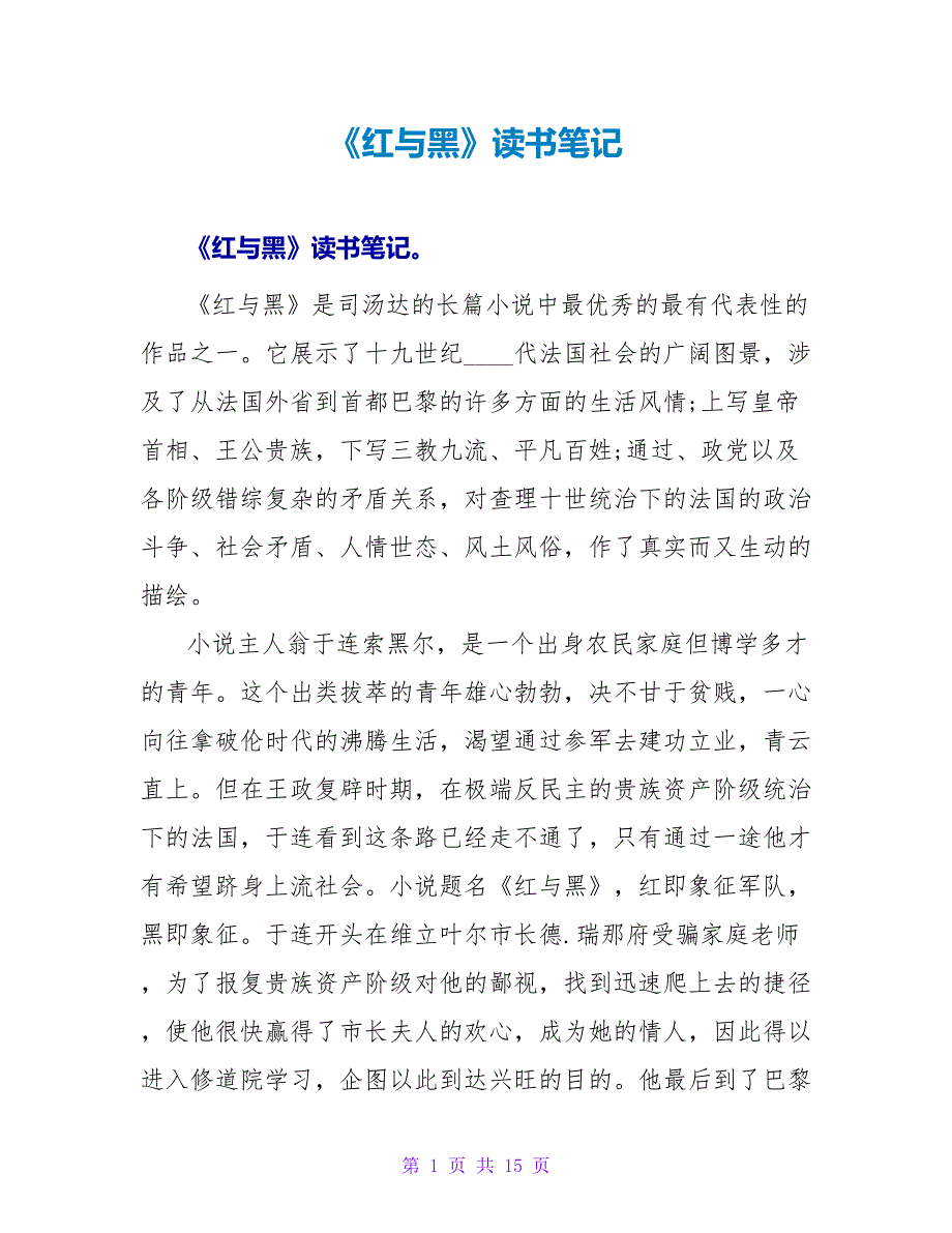 其实,于连已经成功了,即使他犯罪入狱后,他仍有可能逃跑,他假设放弃尊严表示屈从于连的成功并没有给他带来幸福,反而是他的失败促使他走上幸福之路红与黑是象征赌盘上的红点黑点,而轮盘那么象征人生的游戏等我认为红色还可以象征于连追求人生的意义,而黑色就代表社会中形形色色为了自己的利益而拼命奔波,却不理解自己存在真正意义的生存状态吧!在社会现实阻碍实现抱负时只有两种选择:退避或对抗那些当着小职员不求上进、整天抱怨生活乏味的青年就是退避者这个时代当然不欢送虚伪的言行作为手段,但仍需要对生活的热情来对抗空虚的度日这样,于连悲剧性的结局除了昭示个人对抗行不通外,就有了对当今社会更实际的意义我们不难发如今这种幸福的标准是以社会和别人的标准为标准,追求别人和社会的成认本质上,他并没有获得多少快乐和幸福,反而使他处在一种紧张状态,仅仅是感到快乐的道路极点,兴奋地跑来跑去,一种野心家实现后的狂喜,只是片刻激情而已,剩下的是想着紧接着应该在制定一个方案《红与黑》读书笔记1200字读《红与黑》是一段太过漫长的过程,因为时间已给了作家和作品最无私而又公正的评判,我的阅读态度自不能像对畅销书那样肆无忌惮,又不能像对言情小说那样不置可否。