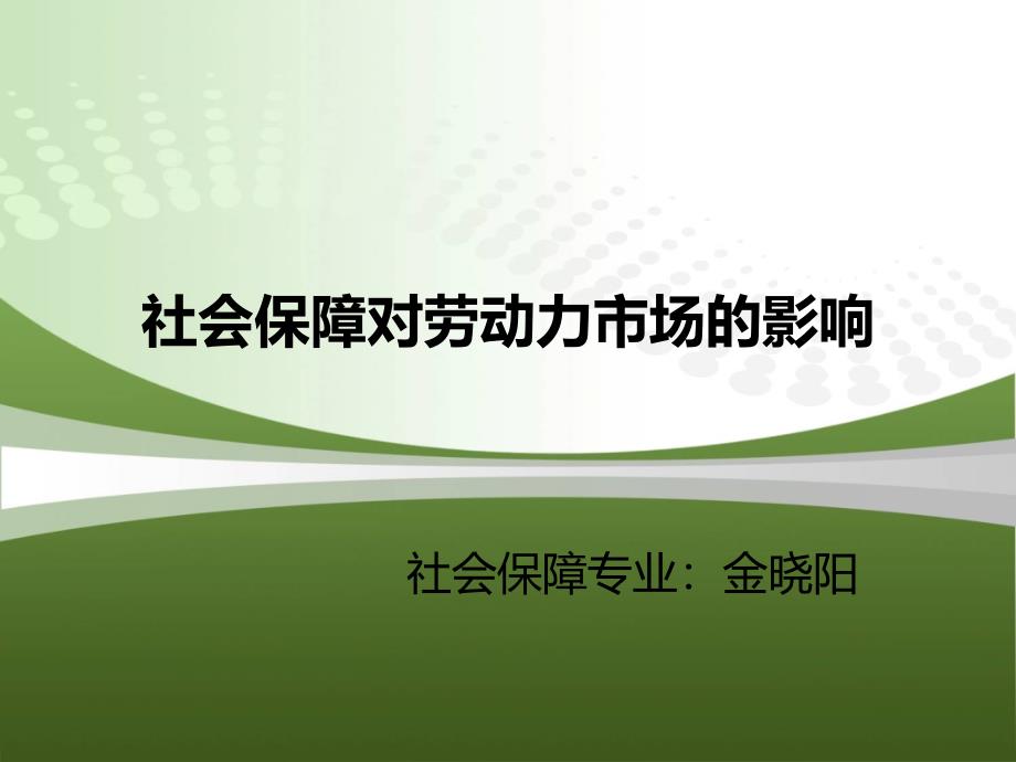 社会保障对劳动力市场的影响 社会保障专业:金晓阳 社会保障所覆盖的对象既包括劳动者,又包括潜在劳动者,所以必然会对劳动力市场产生影响这种影响既涉及劳动力的供给和需求,还涉及劳动力资源的配置效率一、社会保障与劳动力供给 由于社会保障既向劳动者征税(费),又向劳动者或潜在的劳动者提供各种给付,因而有可能会改变劳动者的劳动力供给社会保障对劳动力供给的影响既有积极的一面,又有消极的一面 (一)社会保障对劳动力供给的积极影响 社会保障对劳动力供给的积极影响主要表现在一下几个方面: 1.激发劳动者的劳动积极性 社会保障制度作为现代社会公民的基本保障制度,为社会成员基本生活提供了有效的保障,劳动者在其失去劳动能力后,可以继续获 得社会帮助,或者从自己劳动所得的积累中使其生活得到一定改善,使劳动者能够在劳动期间免除后顾之忧,全身心投入到劳动之中从这个层面上讲,社会保障有利于激发劳动者的积极性,从而增加劳动力的供给 2.通过收入效应增加劳动力供给 由于征收社会保障税(费)会使劳动者当期收入减少,劳动者为了保持自己的生活水平不因征收社会保障税(费)而下降,只有更加努力地工作,从而增加劳动力供给。