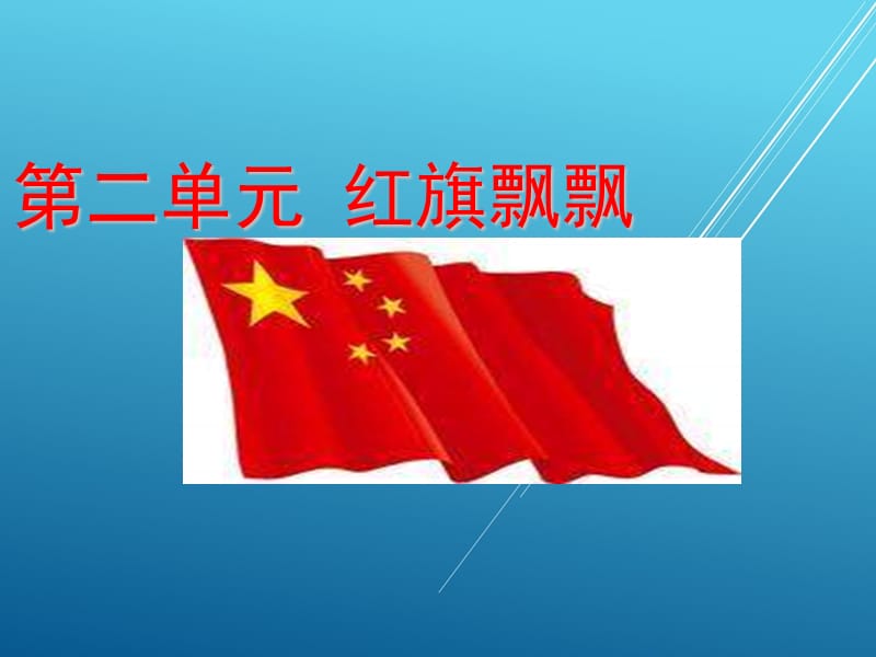 第二单元 红旗飘飘,,,,,国歌的故事,1935年的中国,抗日战争烽火燃遍长城内外、大江南北剧作家田汉为抗战题材电影风云儿女创作剧本在刚完成这部影片剧本的创作后,田汉即遭发动派的逮捕,被关进监狱被捕前,他仓促地把其中的主题歌歌词义勇军进行曲写在一张包香烟的锡纸衬底上,并以化名“陈瑜”公开发表年轻的作曲家聂耳在谱曲前,也因反动派的迫害即将离国,他从夏衍手中抢过歌词说:“作曲交给我,我干!”他在接到了为义勇军进行曲谱曲的任务后,以极大的热情,吧对战友的被捕的悲愤之情和对日寇的满腔怒火倾注到音乐中,创作出这首鼓舞全国人民同仇敌忾、英勇杀敌的激昂战歌在他去日本前写成了初稿,到日本后不久,就把歌谱全部完成寄回这首歌曲在影片风云儿女中一经唱出,立刻产生了巨大影响1935年5月16日电通画报第一期刊出了它的影印谱,后又灌制了唱片,不久就响遍了全中国的每一个角落著名黑人歌唱家罗伯逊演唱和录制的唱片,更使这首中国人民的战歌享誉世界 1949年9月27日,中国人民政治协商会议第一届全国会议决定以义勇军进行曲为代国歌1982年12月4日,第五届全国人民代表大会第六次会议一致通过决议,将义勇军进行曲定位中华人民共和国国歌。