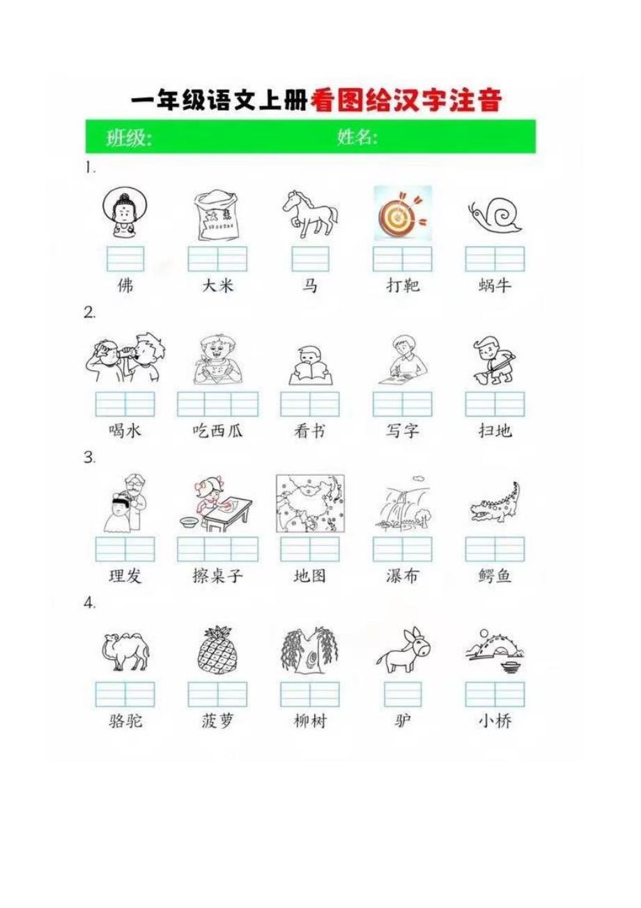 小学一年级上册语文看图写拼音练习题(高清配图版).pdf