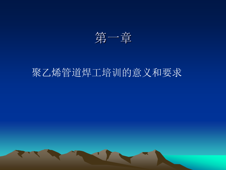 第一章,聚乙烯管道焊工培训的意义和要求,第一节,聚乙烯管道培训的意义,一、国务院2003年6月1日起实施的《特种设备安全监察条例》 二、压力管道的定义 指利用一定的压力输送气体或液体的管状设备,且公称直径大于25mm,其输送介质为最高工作压力≥0.1MPa(表压)的气体、液化气体、蒸气介质或者可燃、易爆、有毒、有腐蚀性、最高工作温度≥标准沸点的液体介质 三、压力管道的分类 劳动部1996年颁布的《压力管道安全管理与监察规定》按用途压力管道划分为工业管道、公用管道和长输管道 工业管道:指企业、事业单位所属的用于输送工艺介质的工艺管道、公用工程管道及其它辅助管道四、2005年7月1日起实施的《特种设备作业人员监督管理办法》对特种设备作业人员种类与项目等内容作了明确要求,其目录序号09规定特种设备焊接作业包括承压焊、结构焊,这其中也包括了聚乙烯管道焊工,它属于特种设备作业人员的一类 五、2006年10月27日颁布了《燃气用聚乙烯管道焊接技术规则》,从2007年1月1日起实施第二节 聚乙烯管道焊接作业人员管理,一、焊工资格分类 焊工资格分为热熔对接焊接和电熔焊接两类热熔对接焊接项目代号为BW-1和BW-2,电熔项目代号为EW。